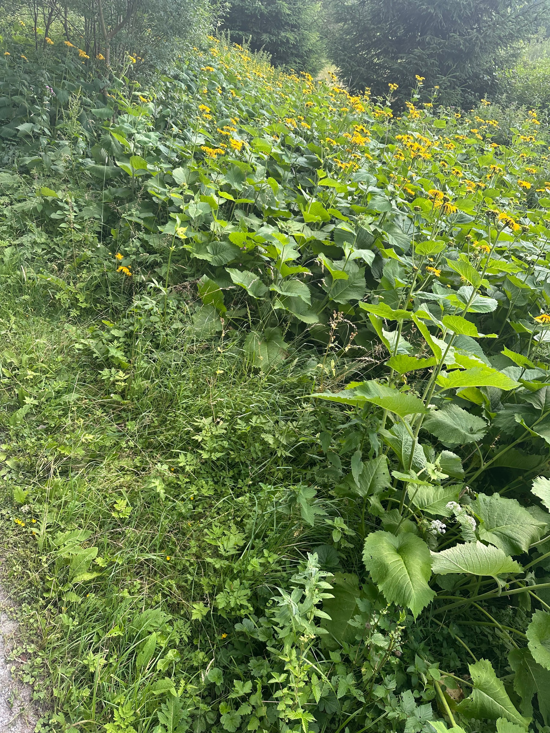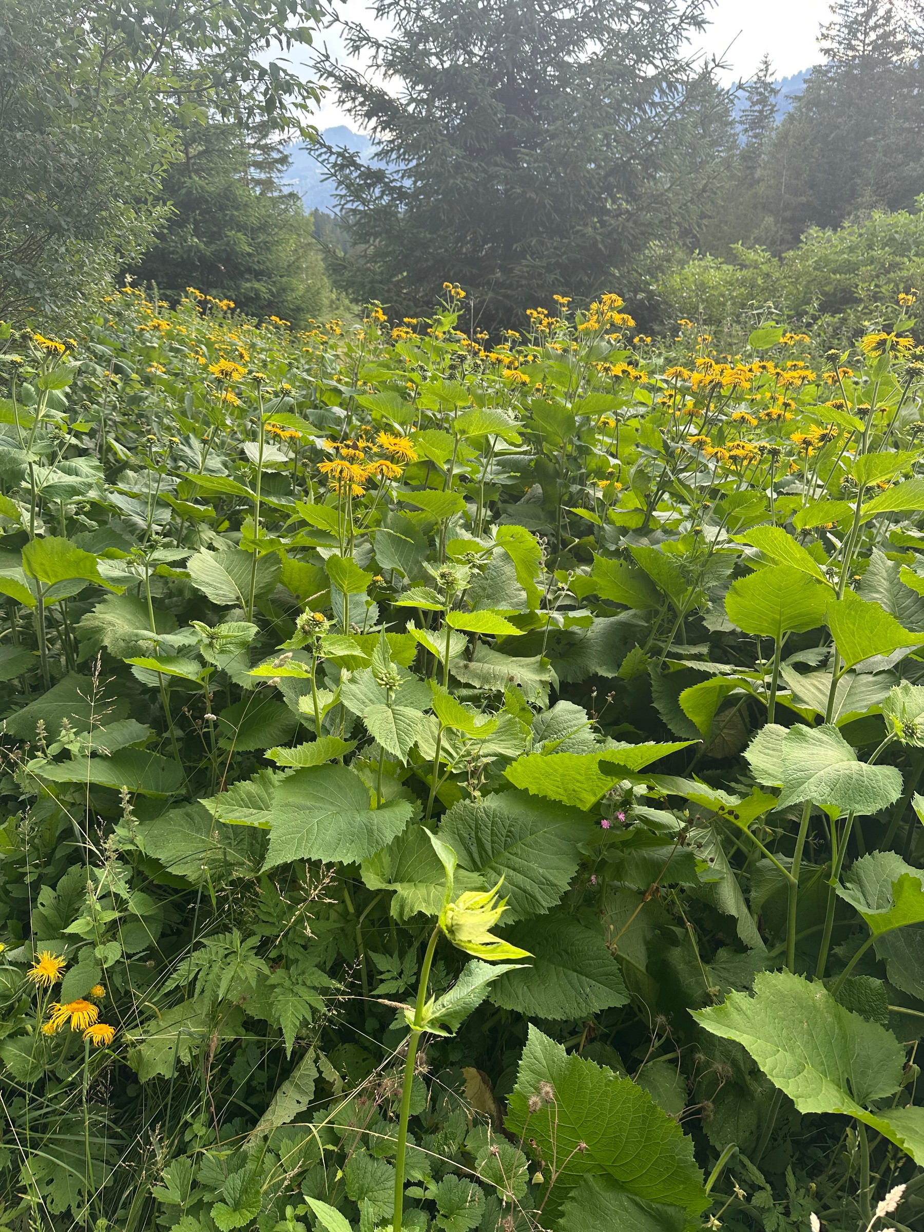 Langsam entwickelt sich Telekia speciosa im Alpenvorland zu einem echten Problem. Hier ein Riesenbestand im Tiefenberger Moor bei Sonthofen, an einer ansonsten sehr naturnahen Stelle... (wenn's jemand interessiert: 47.48799/10.25423). Sorry, unscharfe Handybilder abends.