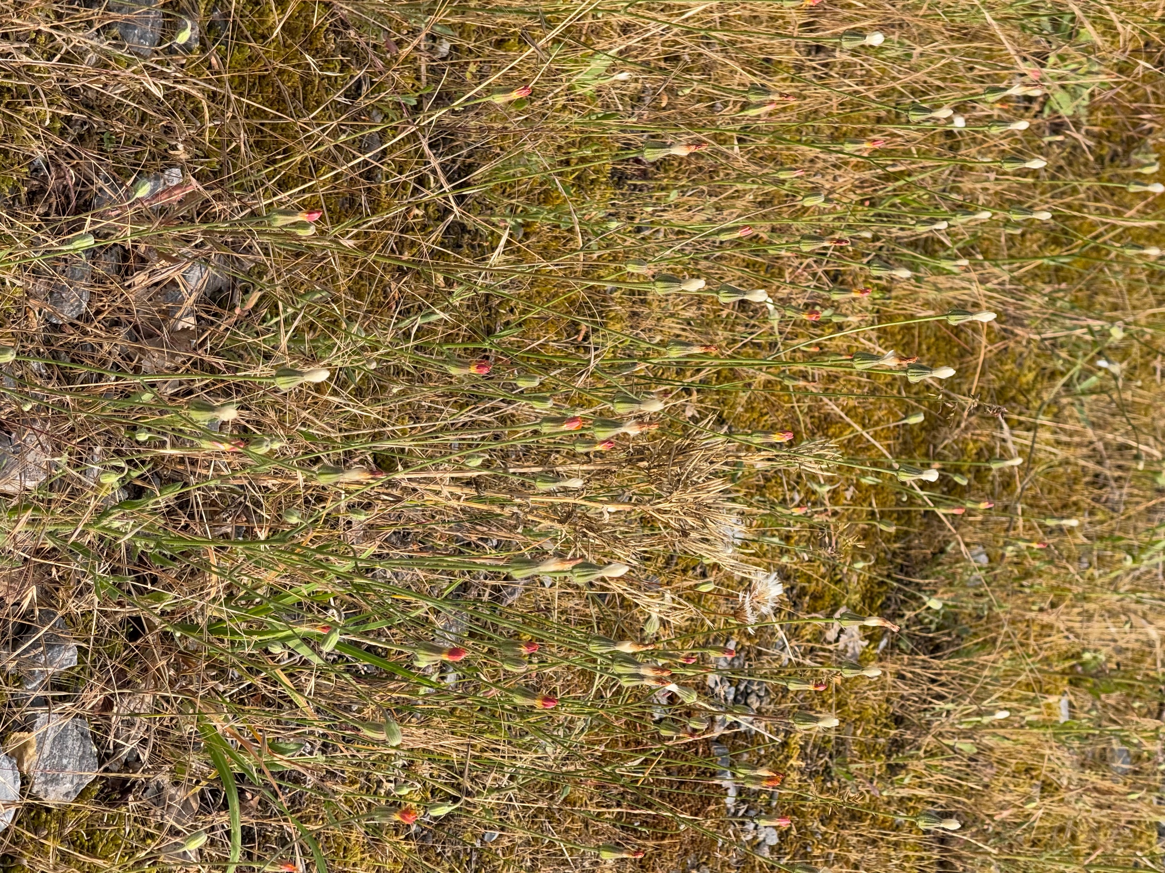Auf der gezeigten Fläche recht konzentriert aber der Crepis kommt recht flächendeckend auf dem gesamten Steinbruch Areal vor. Sicherlich hunderte Exemplare vllt in die Tausende, aber gezählt habe ich nicht und man übersieht auch mal schnell eines.
