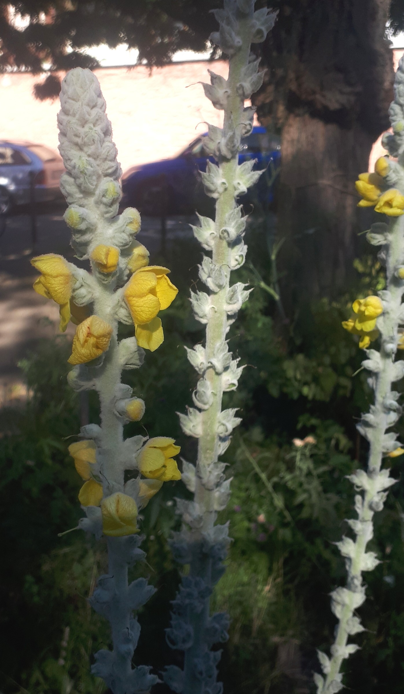Verbascum bombyciferum in Anpflanzung in Karlsruhe-Durlach auf einer Grünfläche: