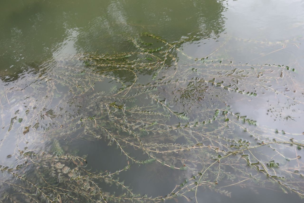 @Dominik: Du kennst die Stelle? Im Augenblick wäre das nix mit Gummistiefeln. In der nach dem vielen Regen trüben Brühe des Stadtbachs war nur Potamogeton perfoliatus zu erkennen. Außerdem schwamm ein abgerissener Trieb von Groenlandia densa vorbei, den habe ich aus dem Wasser fischen können.