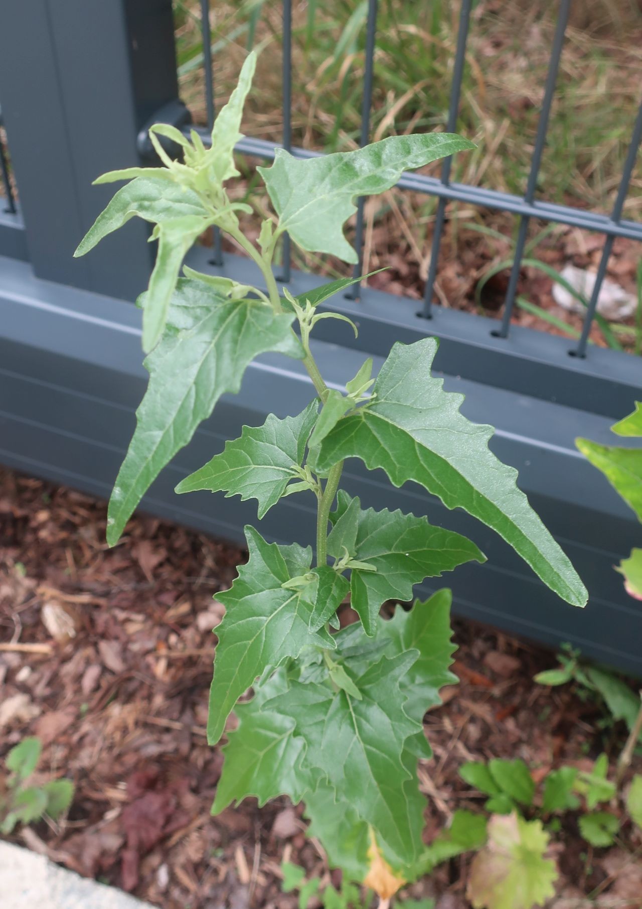 gestern in Hof, Oberfranken, einige Atriplex-Exemplare am Straßenrand mit oberseits stark glänzenden Blättern, aber sonst leider noch recht merkmalsarm. Rote Striemen bei den Blattansätzen am Stängel habe ich nicht feststellen können. Ich denke, man findet auf den Bildern Beispiele für plane, nach oben wie nach unten gebogene Spießecken, das hilft wohl nicht weiter. Lassen sich micrantha und sagittata im vegetativen Zustand überhaupt abgrenzen?