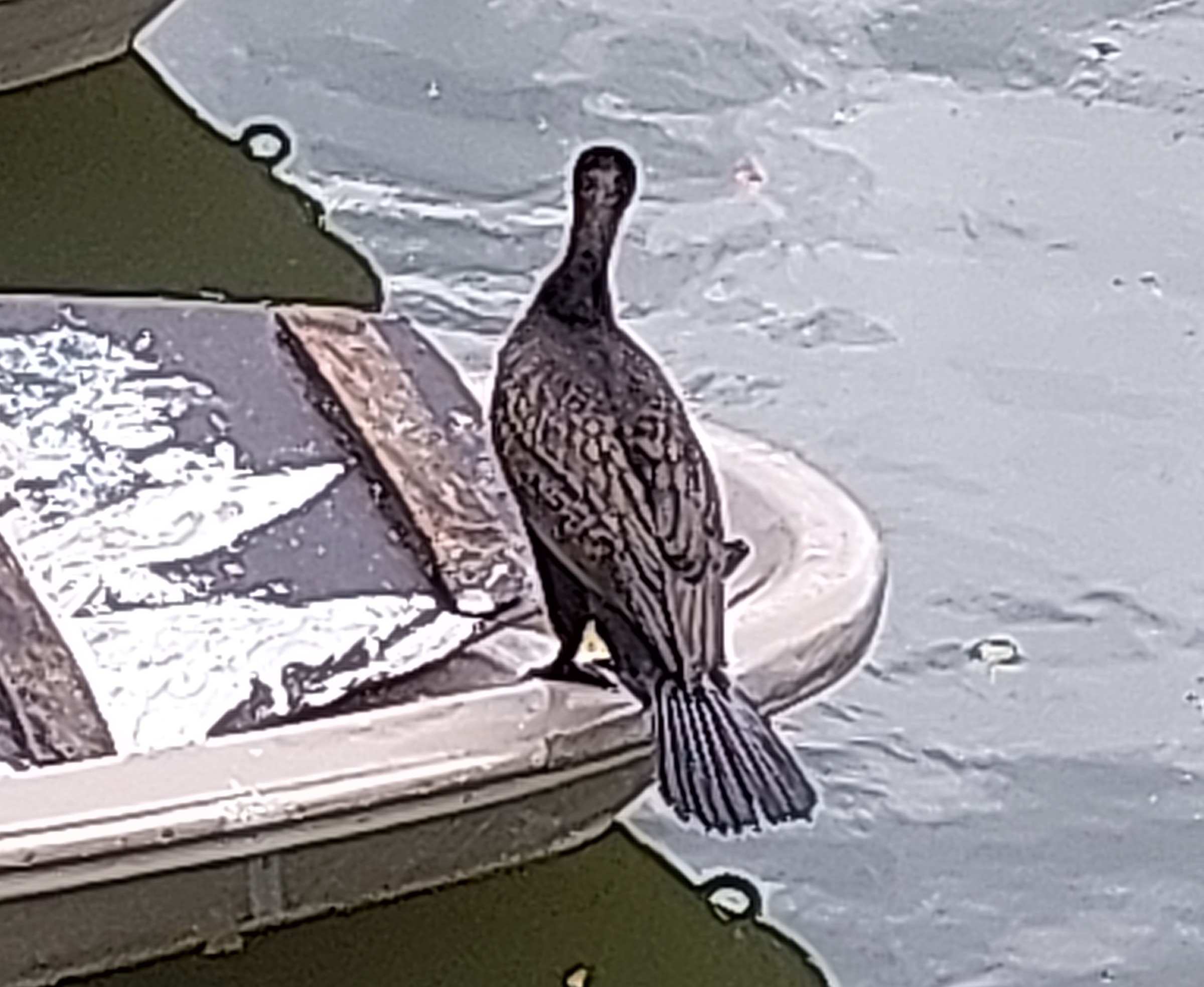 Kormoran auf Paddelboot, ebenda.