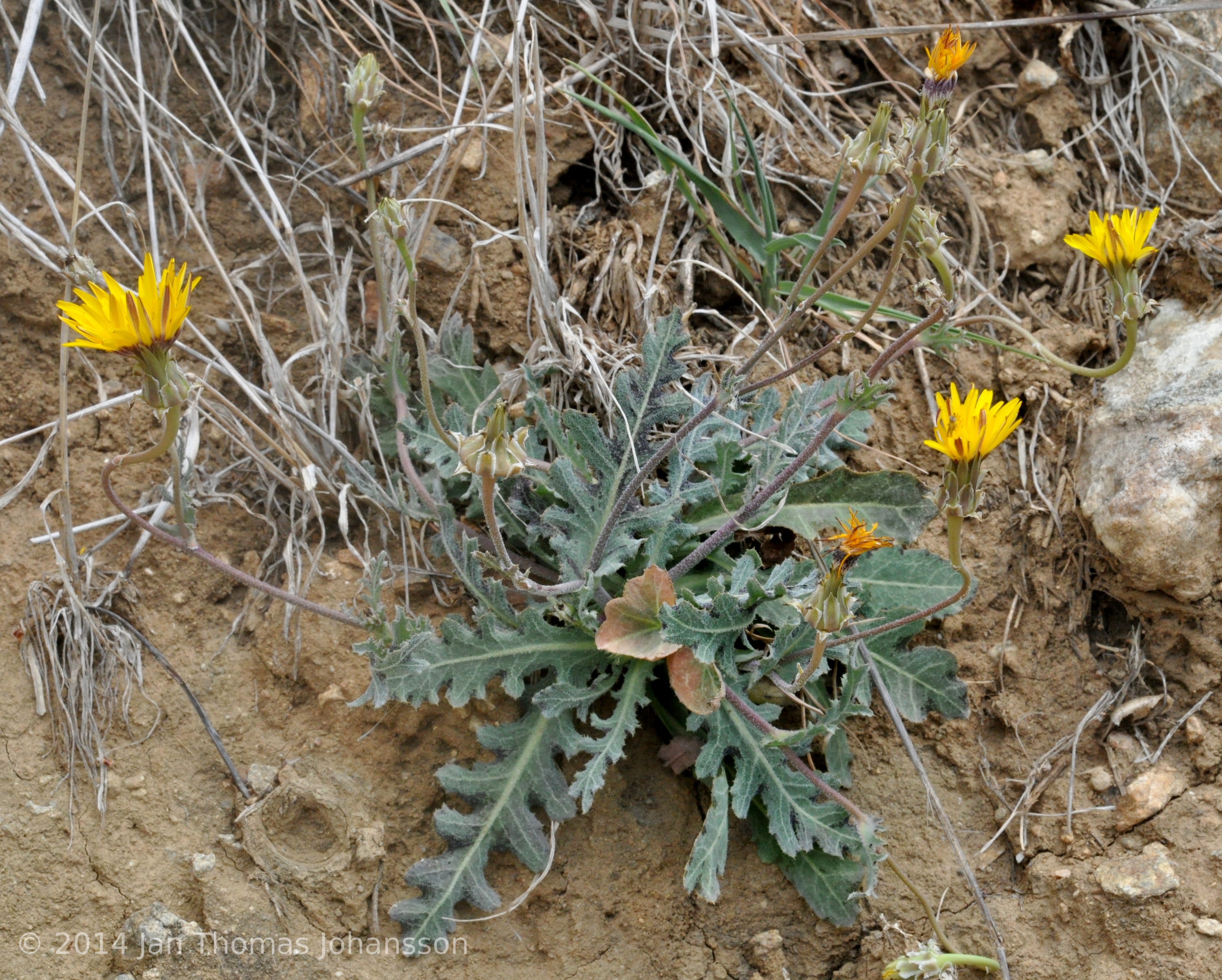 ich denke, das ist Reichardia ligulata, auf Spanisch „Cerraja de costa“. Aus der Gattung käme laut Verbreitung sonst nur R. tingitana in Frage, aber die ist ein- bis zweijährig.