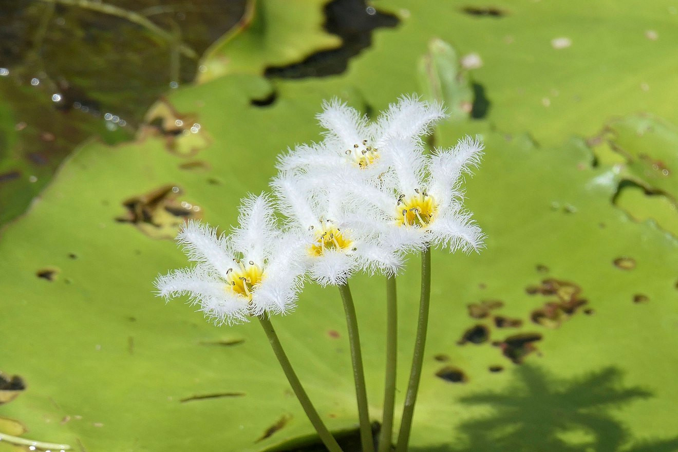 Ich kenne aus der Familie sonst nur Seekannen (Gattung Nymphoides), die ich im botanischen Garten in Bonn gesehen habe, Nymphoides peltata)