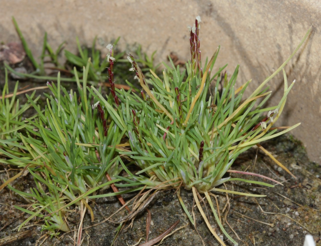 15.1. im Blumentopf, Mibora minima, noch zwei Wochen früher als letztes Jahr schon.