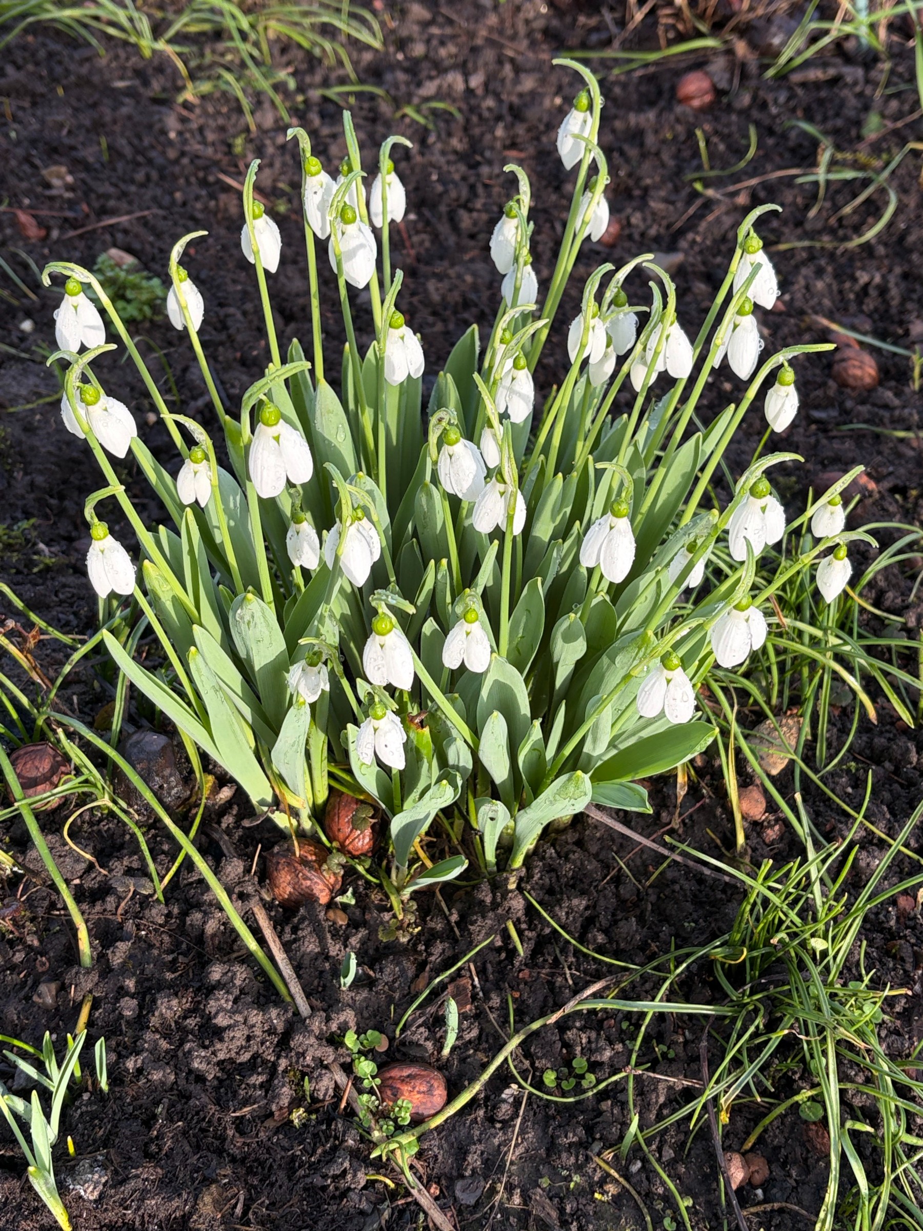 Galanthus elwesii von heute aus dem Garten (meine Frau sagt immer "der Elvis blüht"). Schon seit Ende Januar trotz des Wetters auf; die normalen Schneeglöckchen zeigen erst zaghafte weiße Spitzchen.