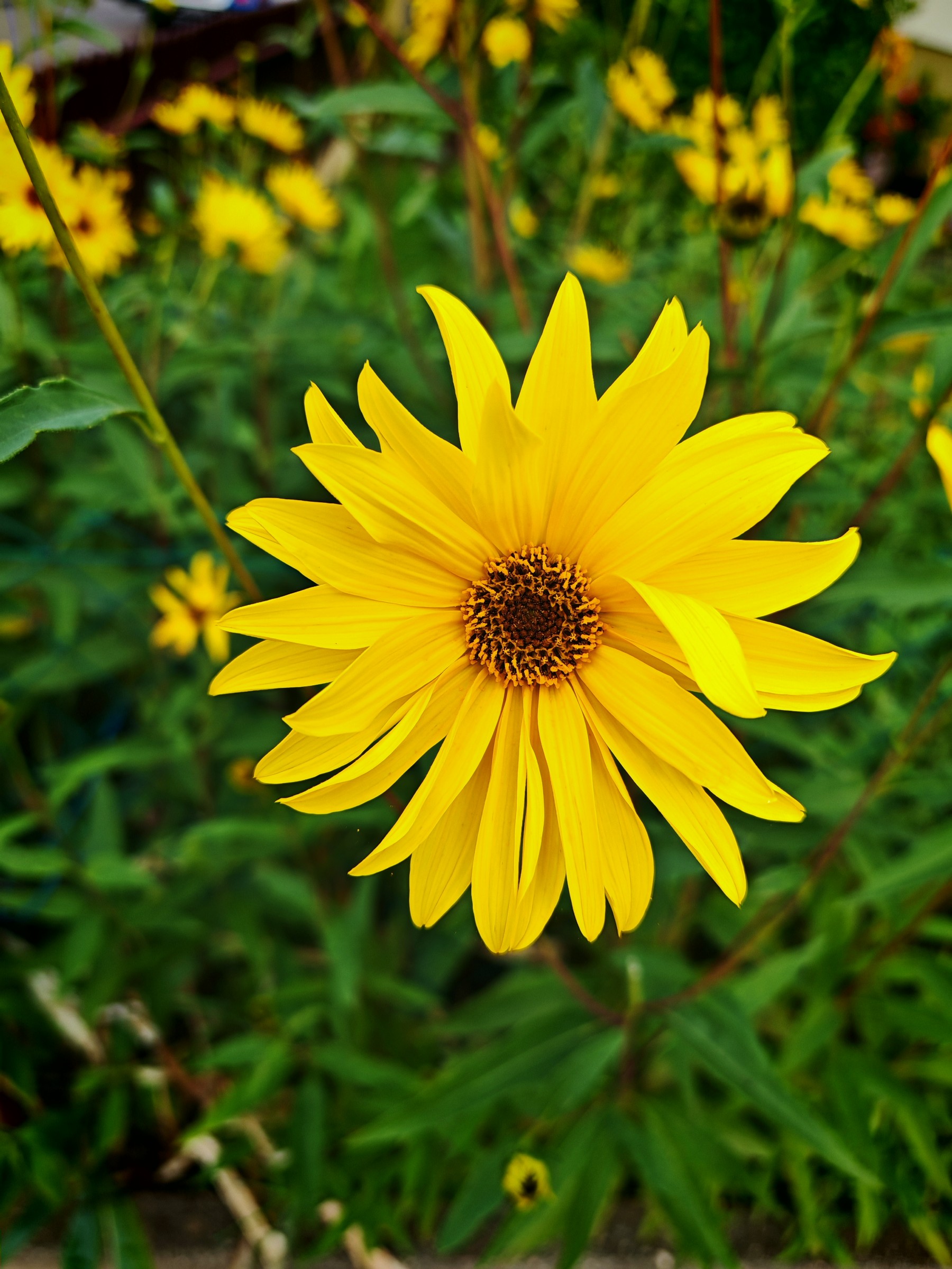 Ich würde gern wissen, wie diese häufige Zierpflanze heißt, die ein bisschen wie Topinambur aussieht.