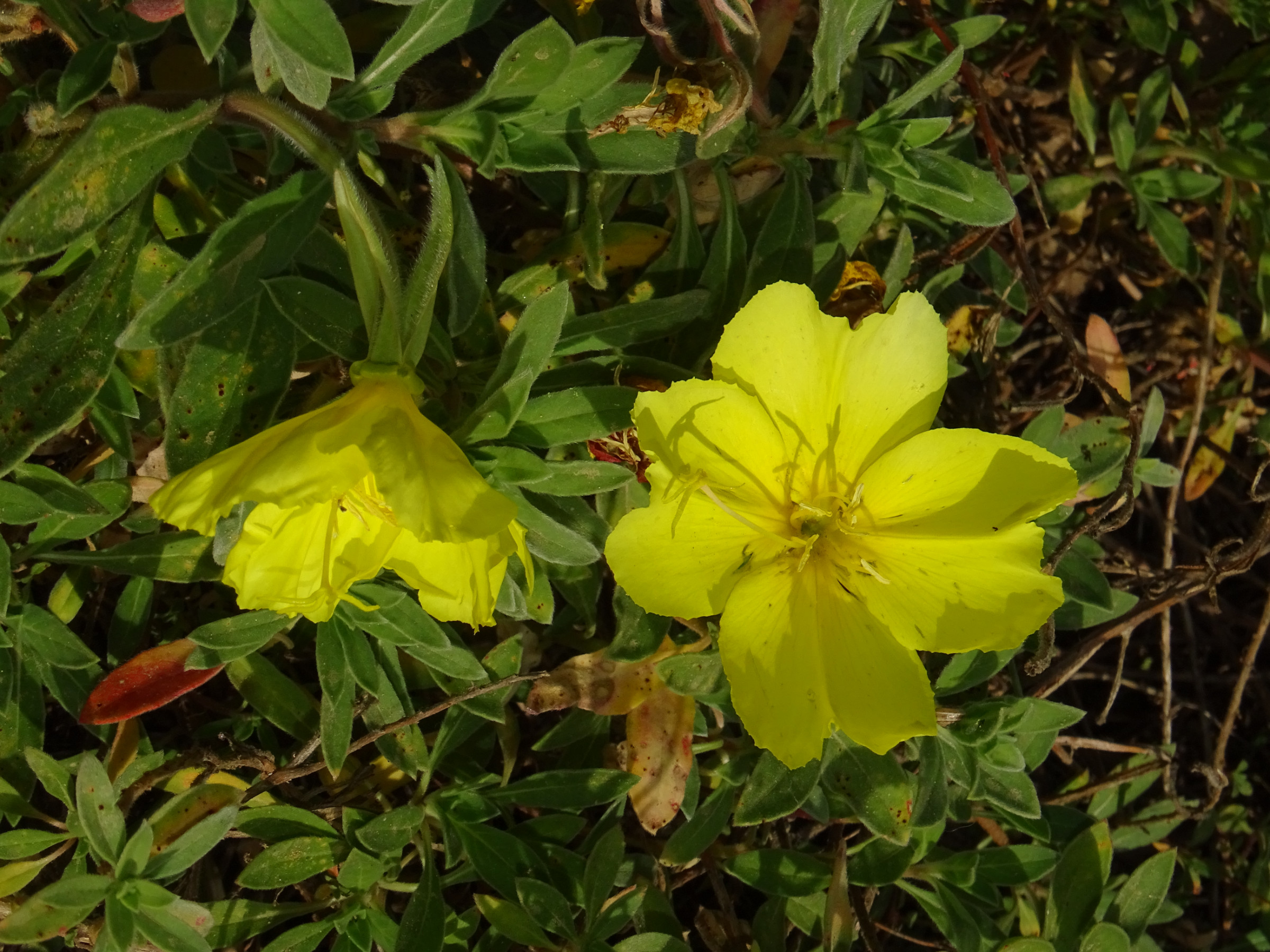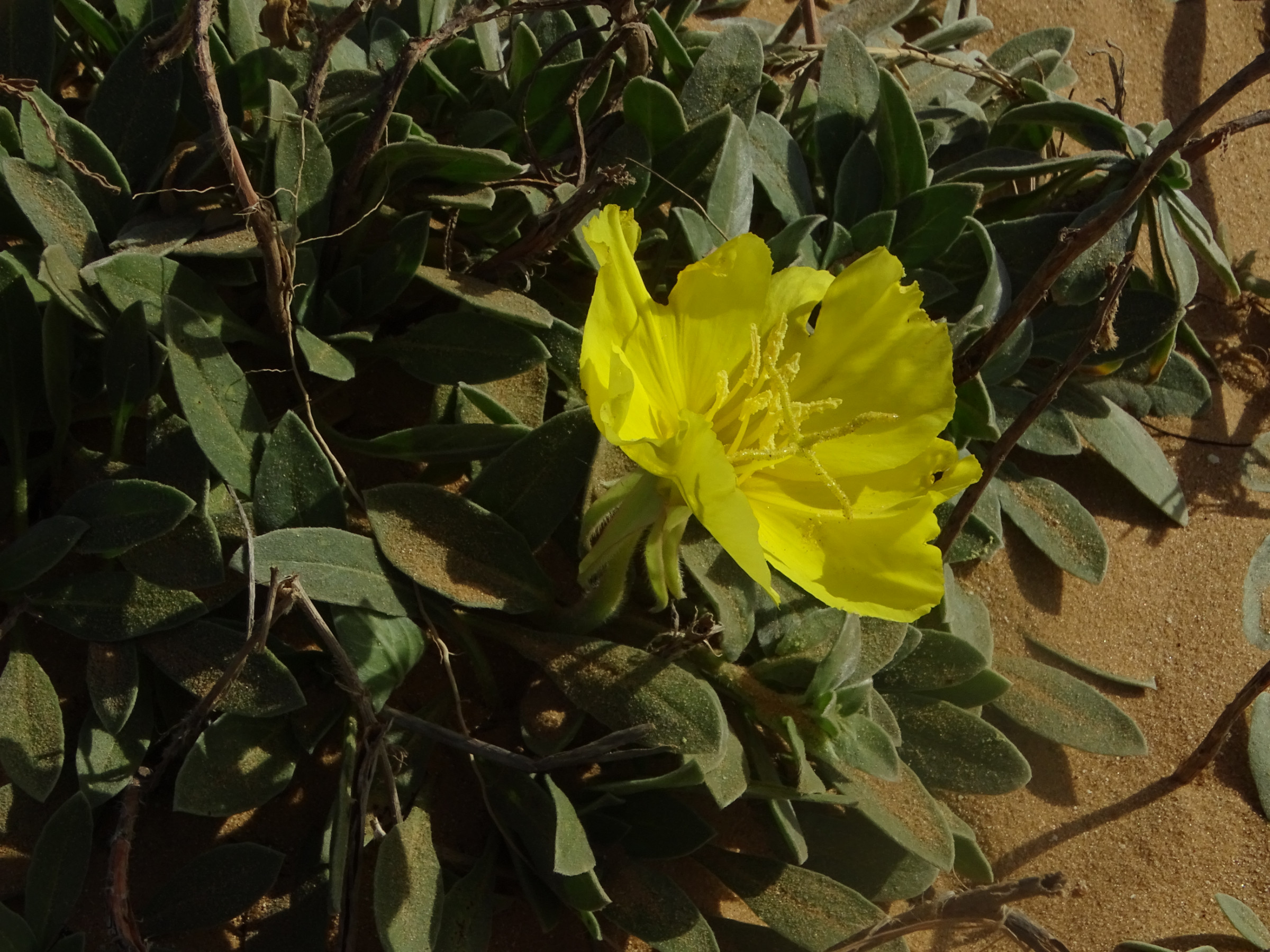Bild 1-3 sind wild wachsende Oenothera drummondii an der Küste bei Tel-Aviv. Gefragt wird hier Bild 4. Diese Pflanze erschien mir aufrechter und wurde an einer Straße im Stadtbereich, ca. 1 km von der Küste gepflanzt.
