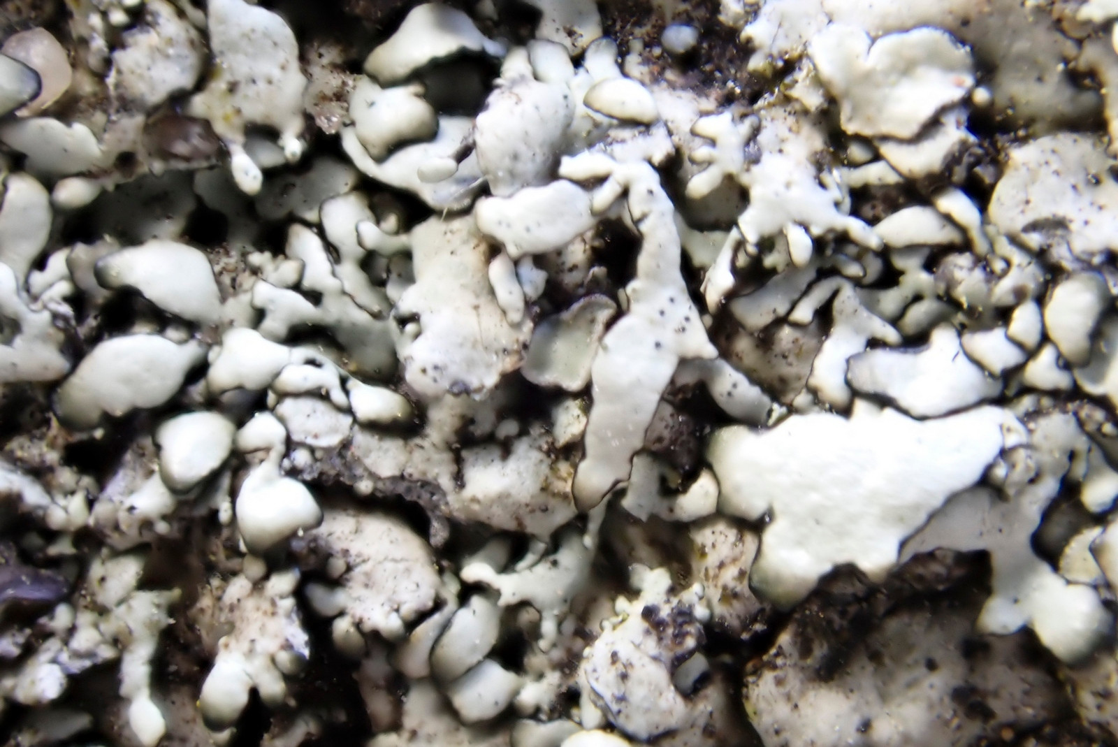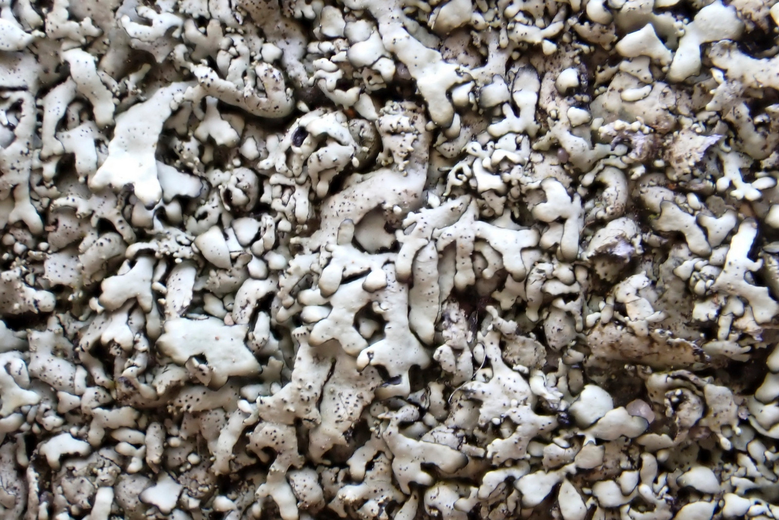 Ich dachte zunächst an Xanthoparmelia conspersa, aber bei genauerem Hinsehen mit der Lupe konnte ich feststellen, dass nirgendwo Isidien zu entdecken waren, sondern ausschließlich Pyknidien.