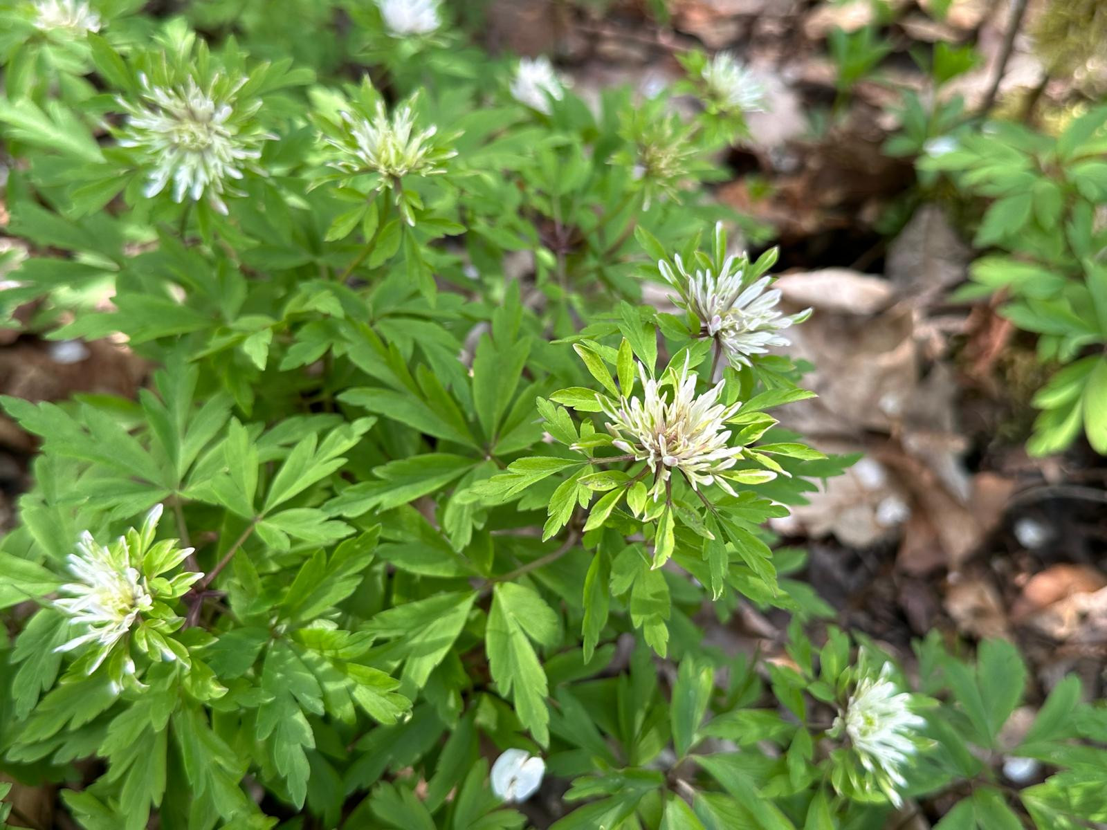 Danke erstmal für die Einschätzung, die ich teile, vielleicht ist es auch eine Kreuzung dort heimischer "normaler" Buschwindröschen mit einer wie auch immer ausgewilderten Zuchtform. Ich habe noch ein Bild mit Detailansicht bekommen, sehr interessant finde ich, dass die äußeren Blütenblätter den grobgezähnten Hochblättern ähneln. Diese Phänomen finde ich bei keiner Zuchtform.