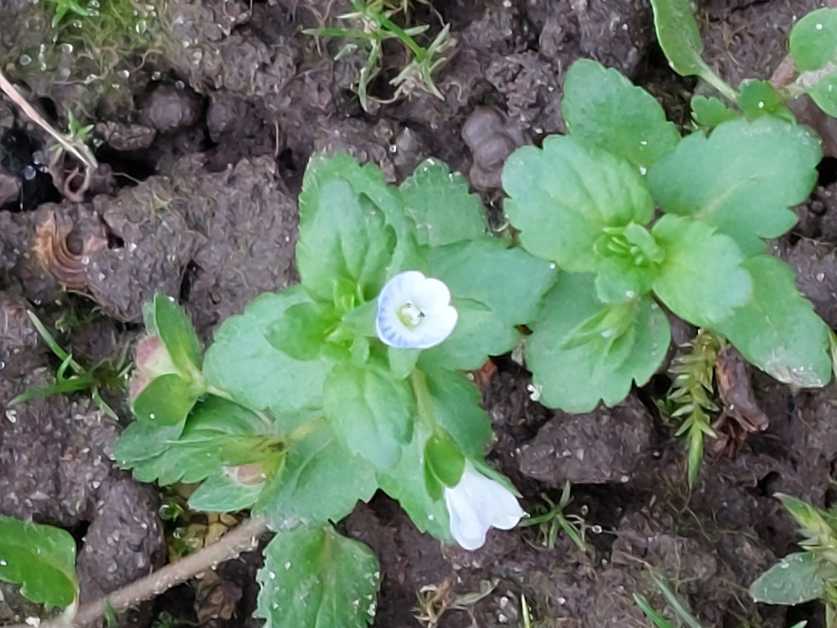So sicher wäre ich da nicht. Die Argumente mit Blattfarbe und -glätte sind gut, falls das Foto nicht verfälscht ist. Es könnte unterbelichtet und blaustichig sein. Aber Blattform, fehlende Ausläufer und Blattstiel sind nicht stichhaltig; zu dieser Jahreszeit kommt das alles vor, wie dieses (rotstichige) Foto von vorgestern beweist. (Die Pflanzen sind natürlich danach ausgesucht, den zu bestimmenden Bilden möglichst ähnlich zu sehen. Das ist nicht der Normalfall.)
