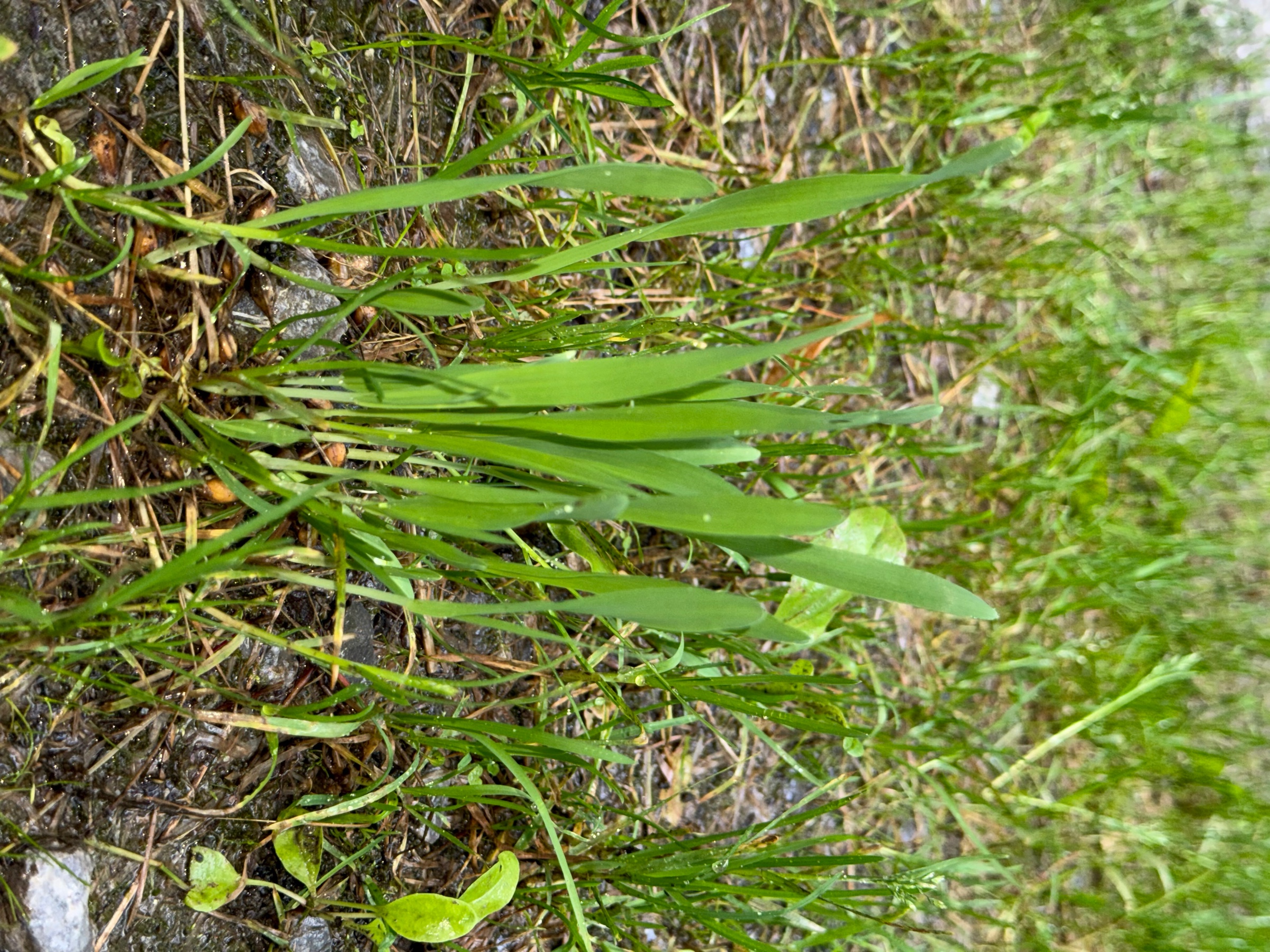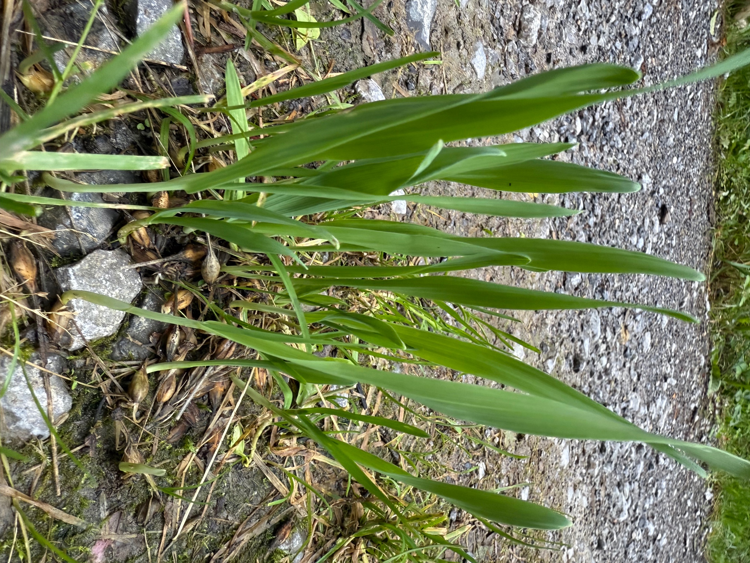 Ein Getreide mit Grannen, (Winter-)Gerste oder Triticale vermutlich. Stammt aus Transportverlusten. Schau mal auf abgeernteten Getreidefeldern, oder an Verladestellen, jetzt nach den Regentagen keimen die beim Drusch ausgefallenen Körner.
