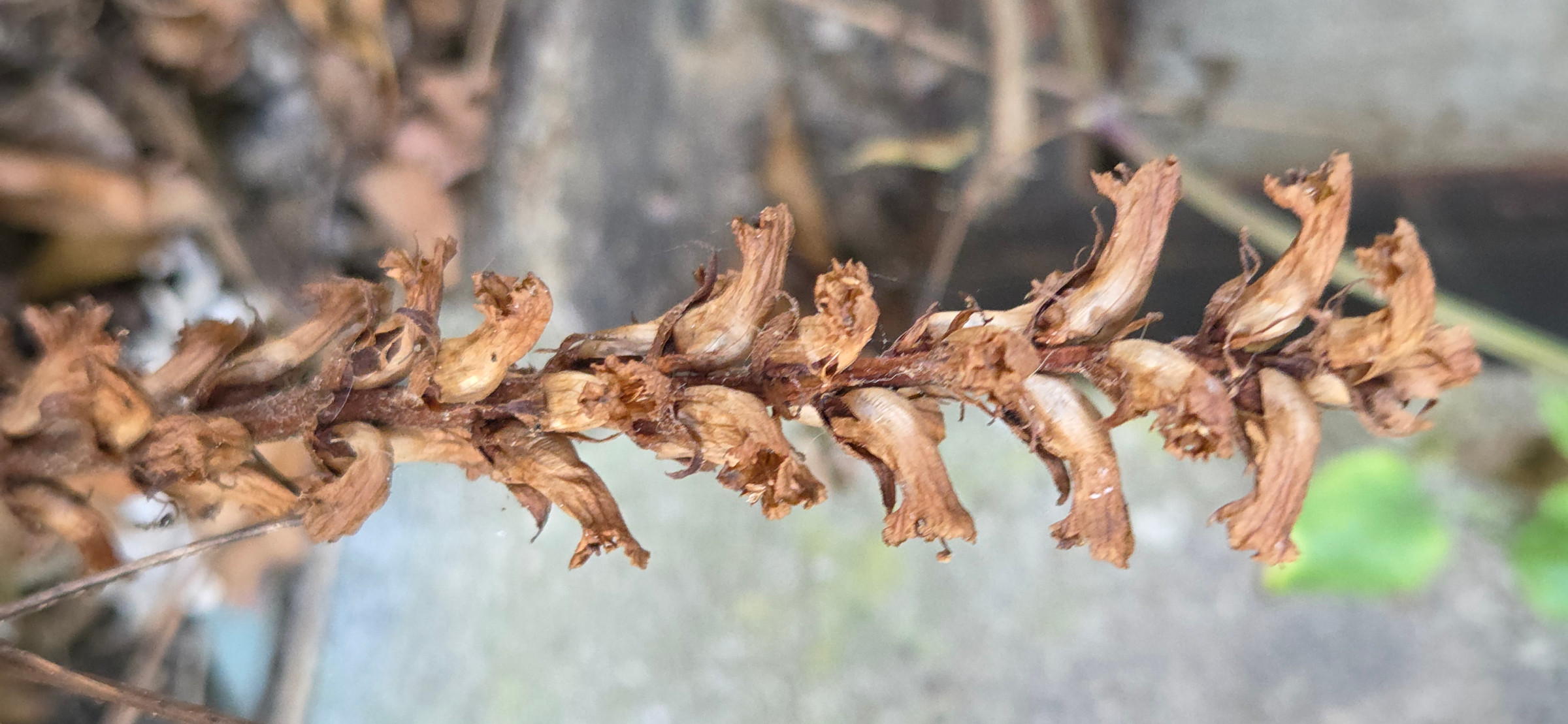kann man diese Orobranche noch bestimmen? Berlin Südwest, Fussweg neben Garten.