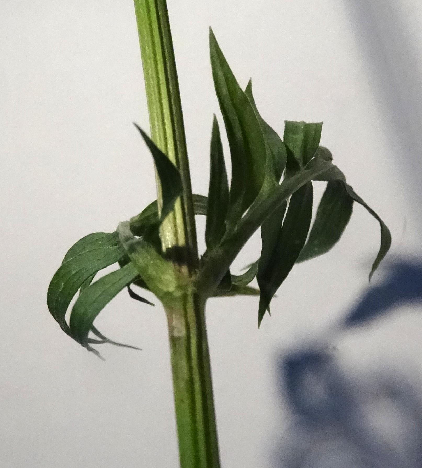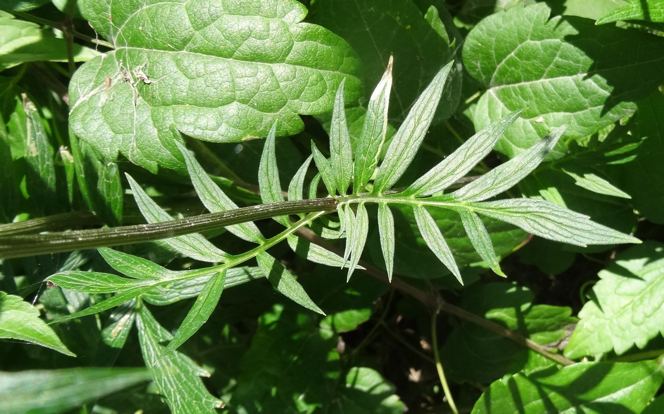 Ich habe die Bilder von den untersten 3 Fiederblättern eingestellt. Die oberen 3 waren sehr klein und ebenfall ungezähnt. Alle liefen am Stängel hinab. Nach der Beschreibung paßt alles zu Valeriana pratensis. Oder?