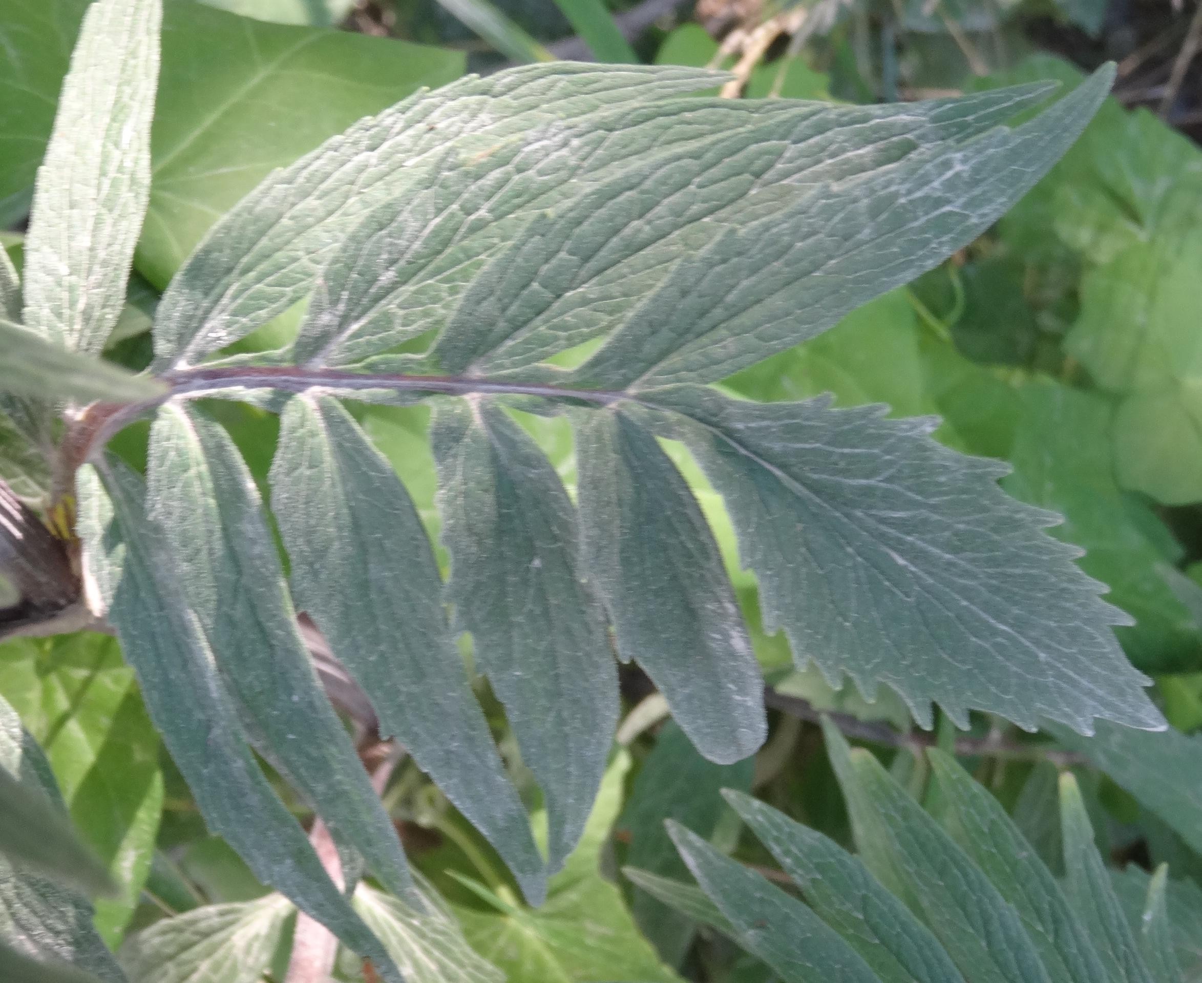 Wobei ich hier einen schwachen, damit wohl auch untypischen Nachtrieb vermute. Wenige Zentimeter dahinter steht ein zweiter größerer Stängel, Fiedernblättchen grob gezähnt, große Rispe und davor Grundblätter die excelsa ähneln, nein, dass ist leider nicht sicher bestimmbar.