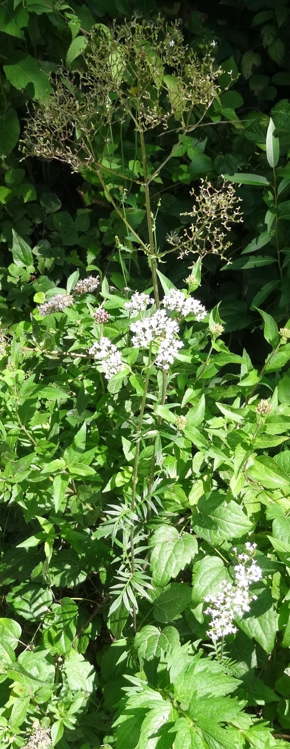 Ich hoffe, daß ich euch nicht auf den Wecker falle. Aber gestern habe ich an dem feuchten Waldweg, von dem meine 3 Fiederblätter stammen, einen Baldrian gefunden, der mir nicht nur durch seinen geraden vereinzelten Wuchs auffiel, sondern sich auch durch seine schmalen Fiederblätter, die alle ungezähnt waren, von den umgebenden hohen und wuchtigen Exemplaren des Baldrian officinalis unterrschieden.