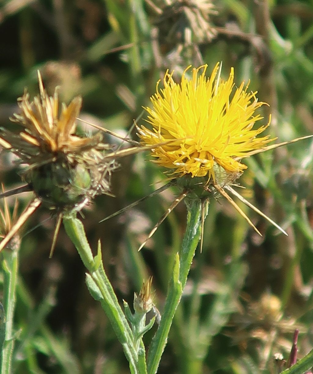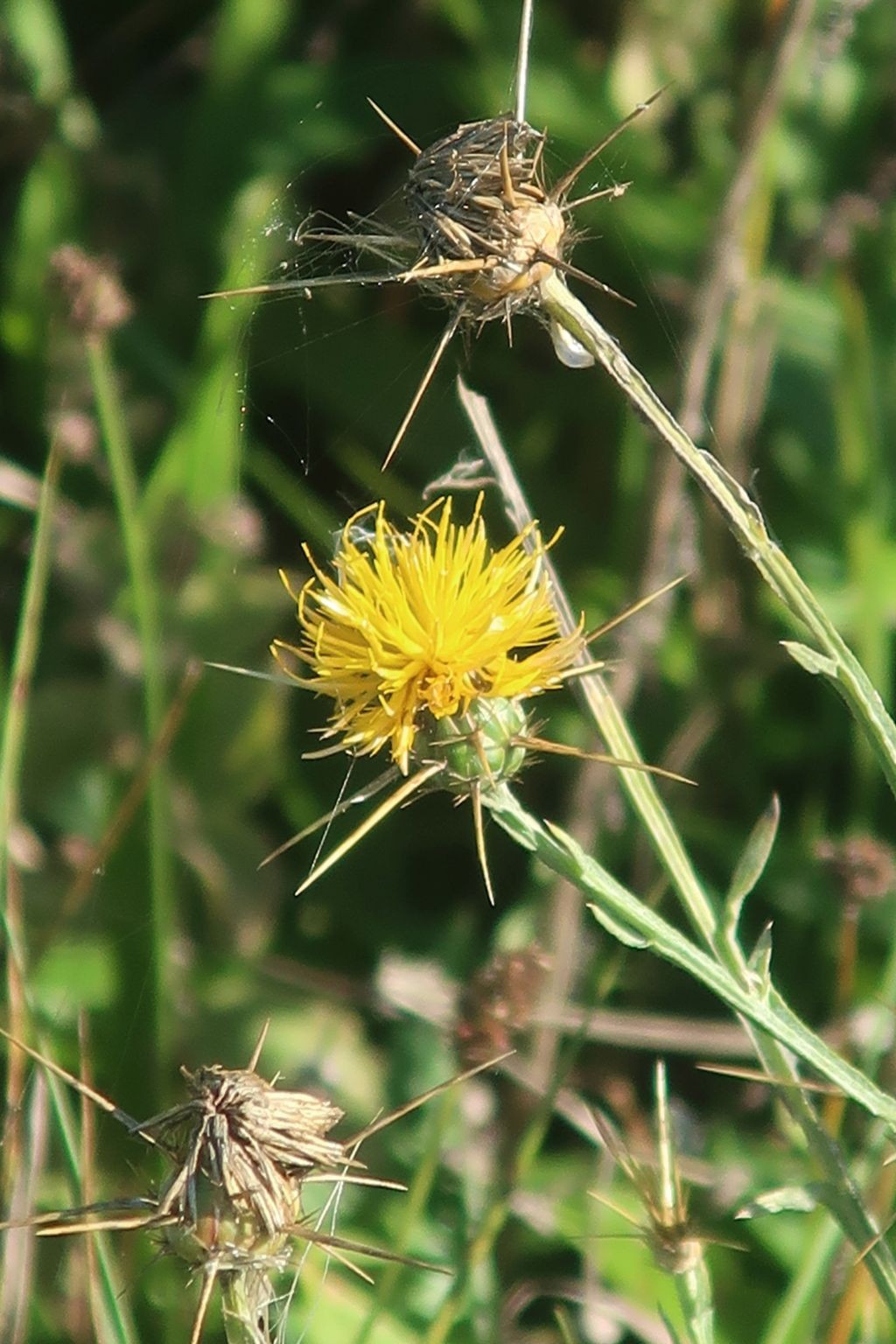 Aber es gab einen schönen "Ersatz-Fund": zwei blühende / fruchtende Exemplare von Centaurea solstitialis, der Sonnenwend-Flockenblume, noch nie zuvor gesehen, am Rand des Feldes.