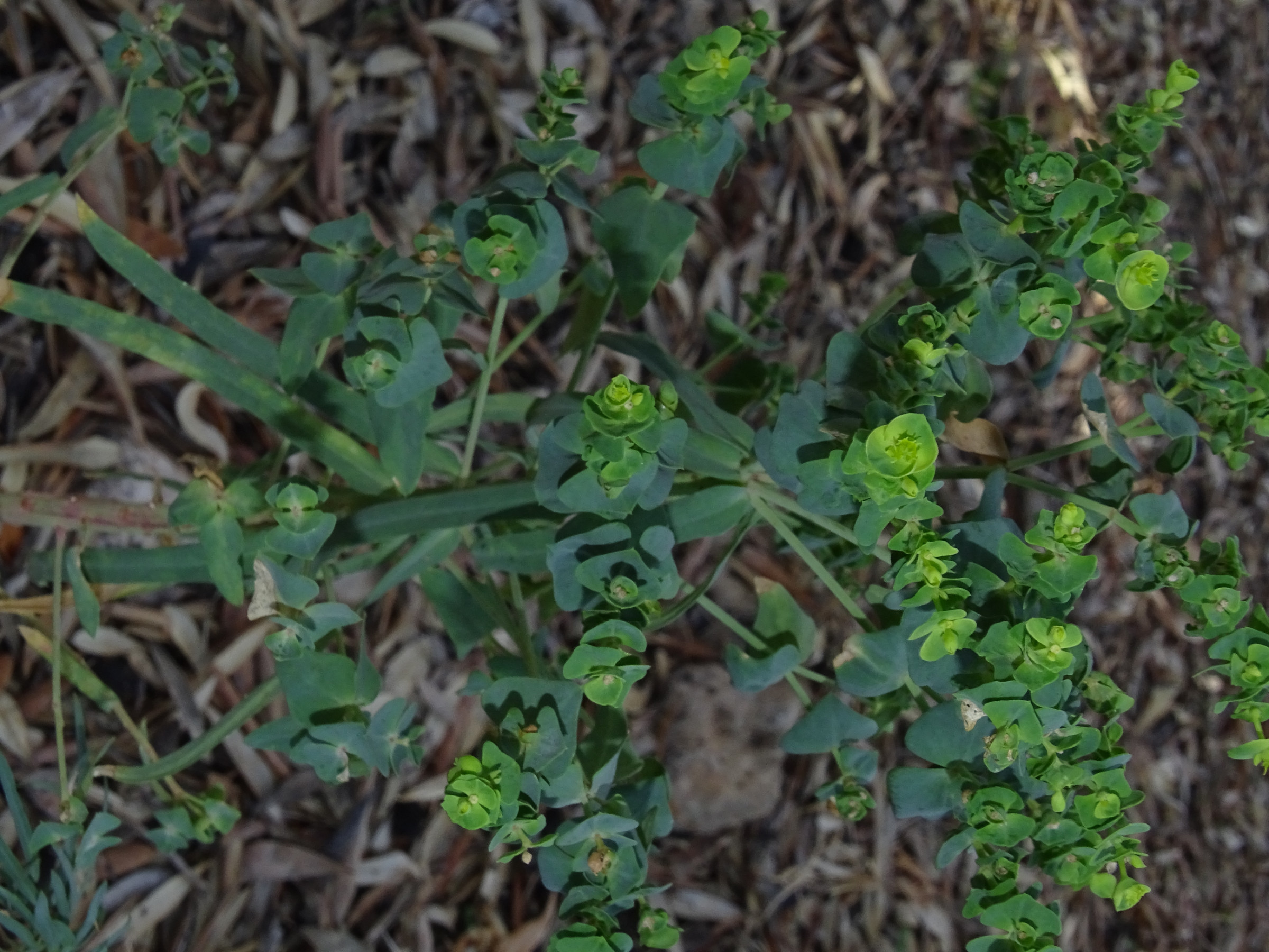 Trockene, beweidete Olivenplantage, ruderal. Aufrechte, monopodiale Pflanze. Nektardrüsen behörnt. ähnlich: E. terracina oder E. segetalis.