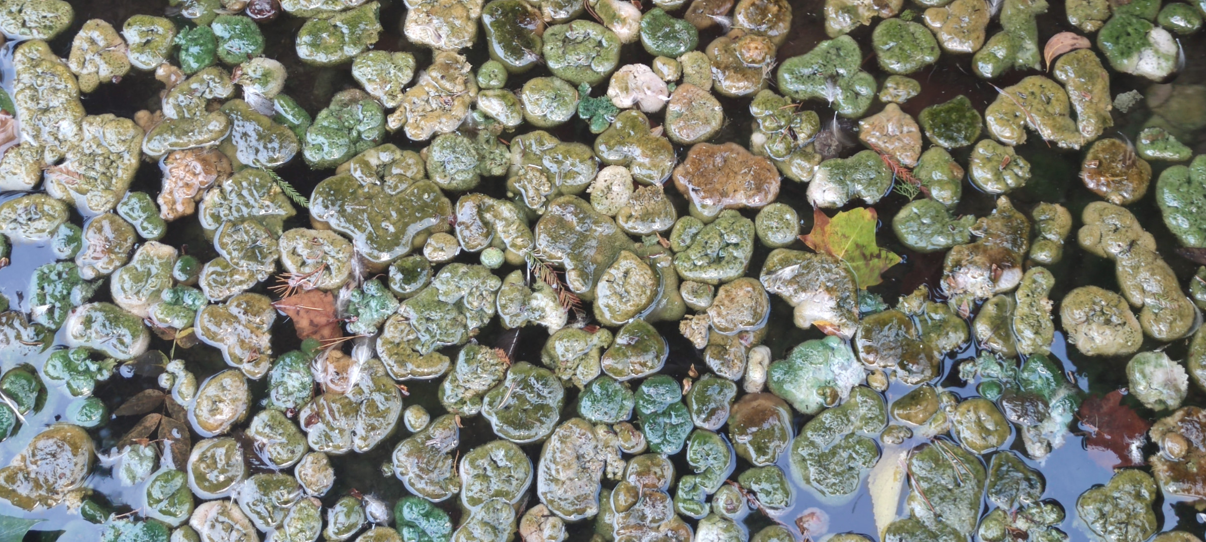 ohne erkennbare Strukturen und "Oben und Unten" denke ich hier, dass es sich am ehesten um Nostoc (edit: keine Algen, wie ursprünglich geschrieben, sondern Bakterien) handeln müsste. Nostoc pruniforme könnte passen, aber ich finde kein Vergleichsbild, was exakt so aussieht.